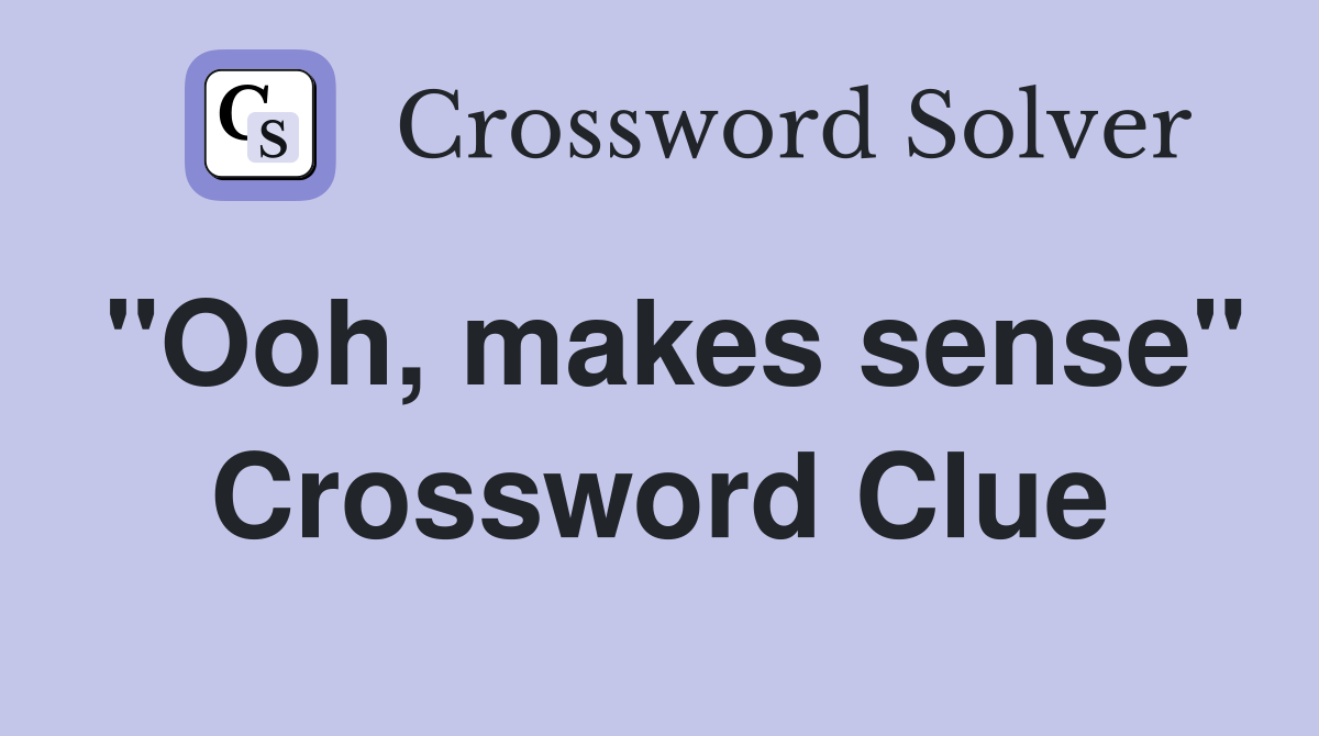 "Ooh, makes sense" Crossword Clue Answers Crossword Solver