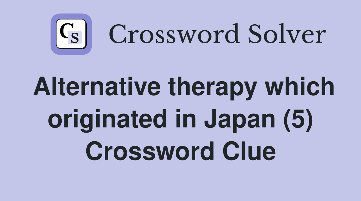 Alternative therapy which originated in Japan (5) Crossword Clue Answers Crossword Solver