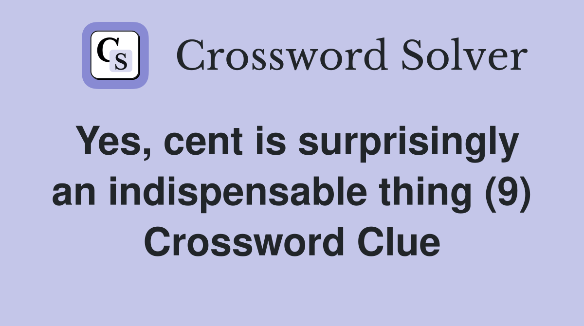 Yes, cent is surprisingly an indispensable thing (9) Crossword Clue Answers Crossword Solver