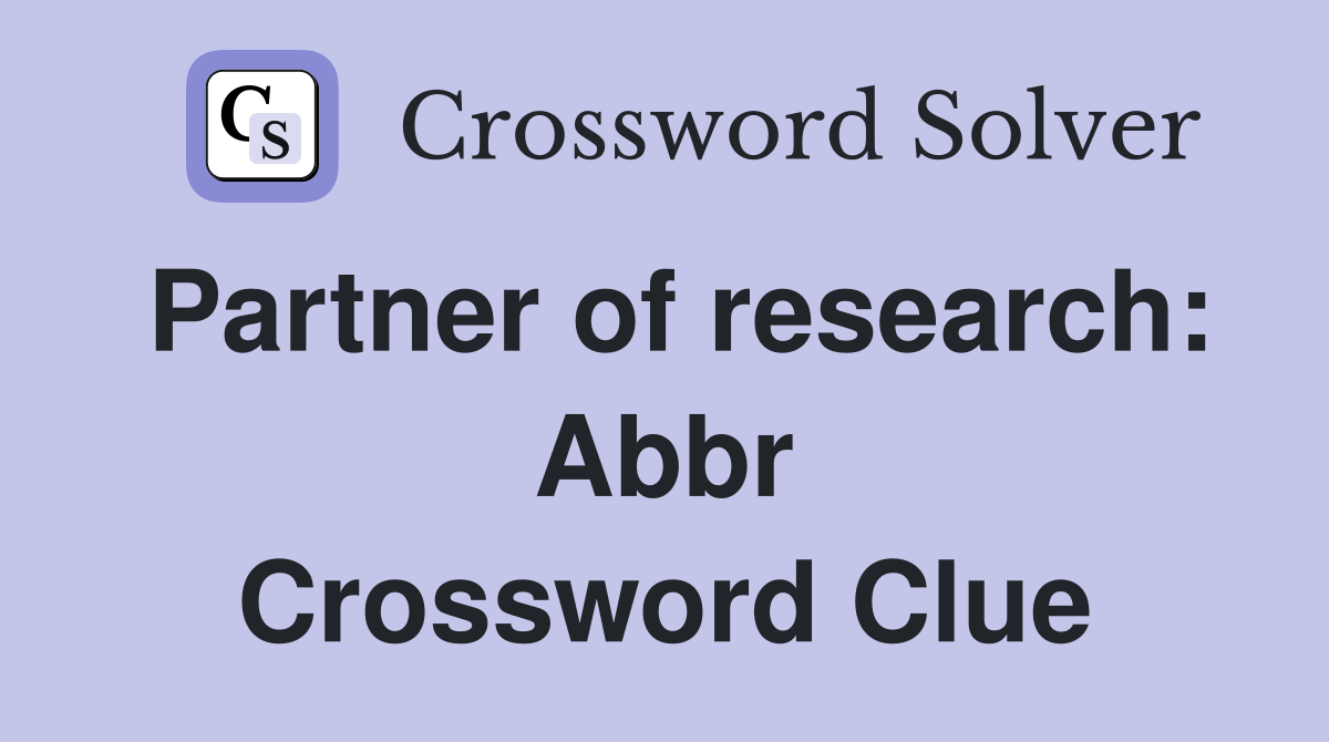 Partner of research Abbr. Crossword Clue Answers Crossword Solver