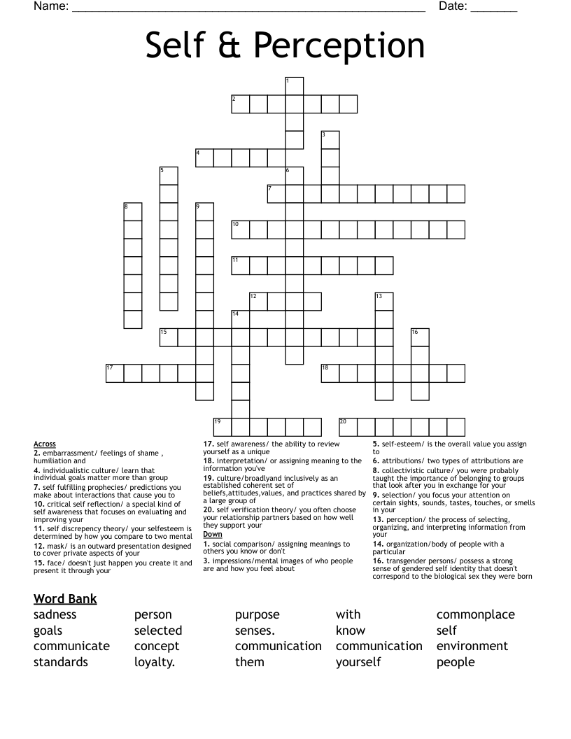 Self & Perception Crossword WordMint
