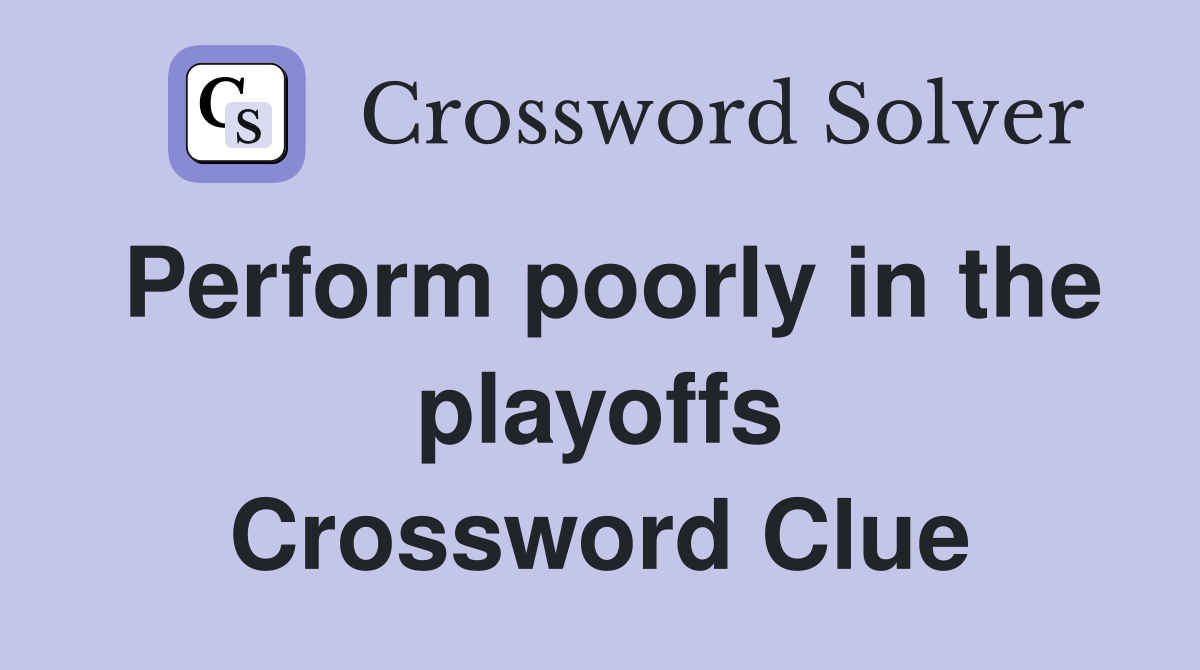 Perform poorly in the playoffs Crossword Clue Answers Crossword Solver
