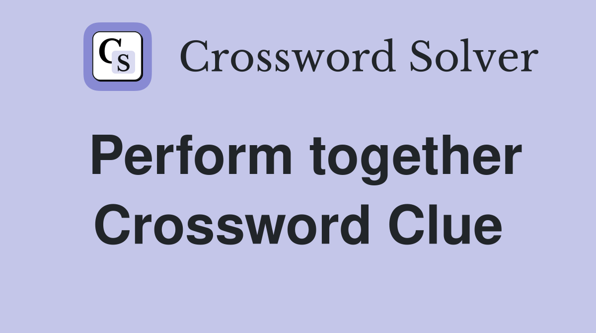 Here is the answer for the crossword clue perform together. Here is the answer for the crossword clue performing together. Web the crossword solver found 30 answers to perform together, 5 letters crossword clue. The crossword solver finds answers.