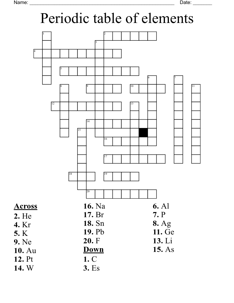 5 Fun Periodic Table Crossword Puzzles Kitty Baby Love