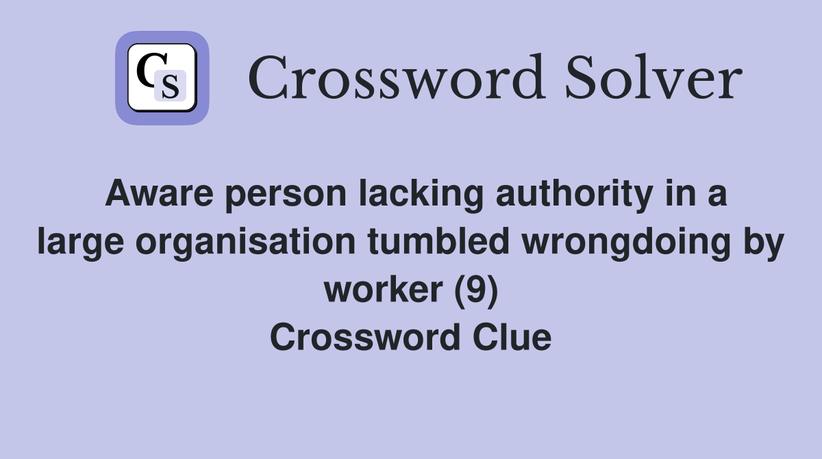 Aware person lacking authority in a large organisation tumbled wrongdoing by worker (9