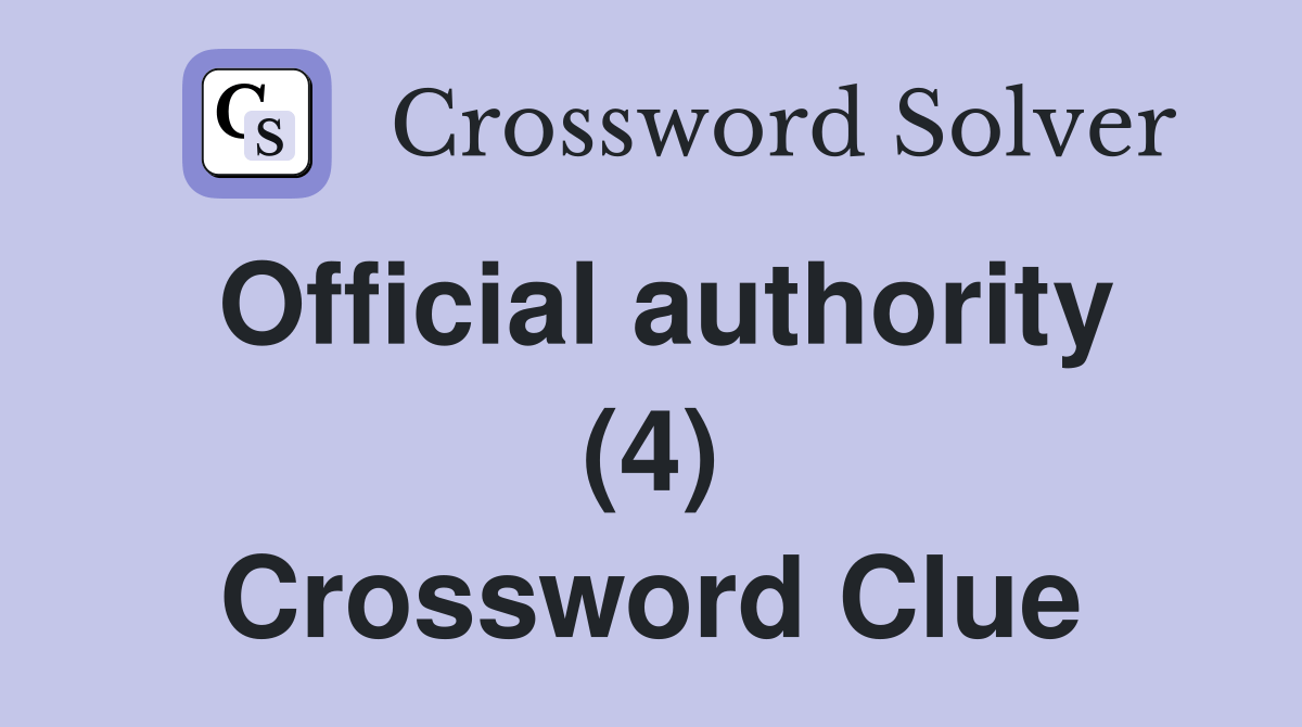 Official authority (4) Crossword Clue Answers Crossword Solver