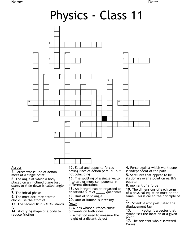 Physics Crossword Puzzles Printable With Answers Printable Crossword Puzzles