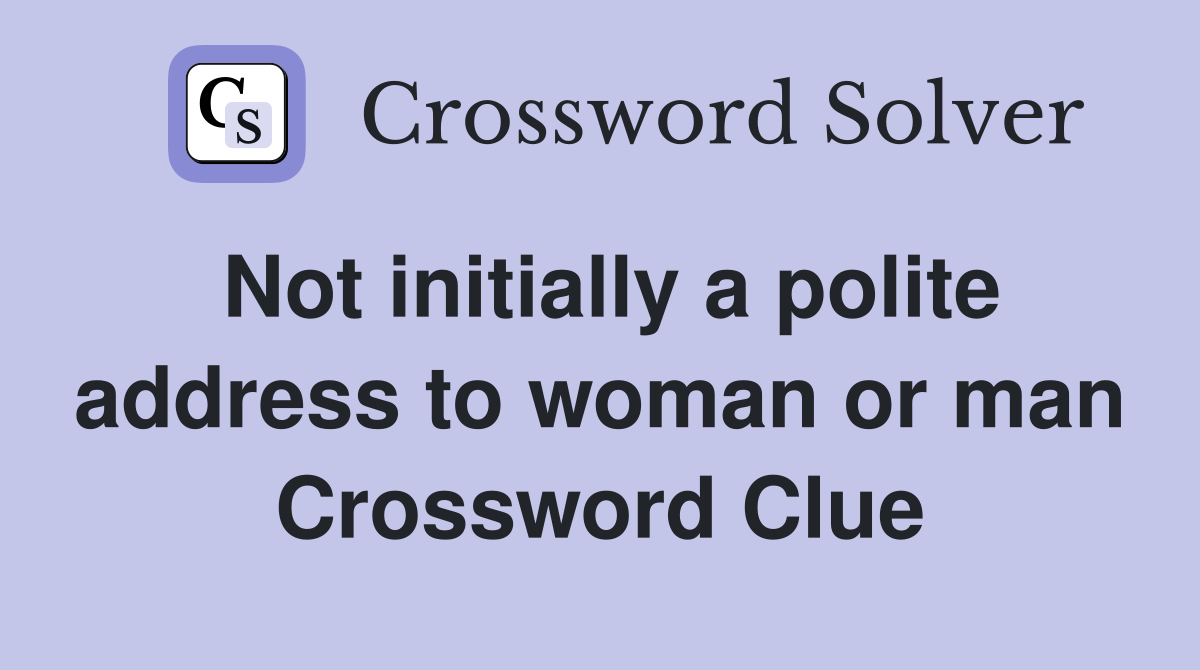 Not initially a polite address to woman or man Crossword Clue Answers Crossword Solver