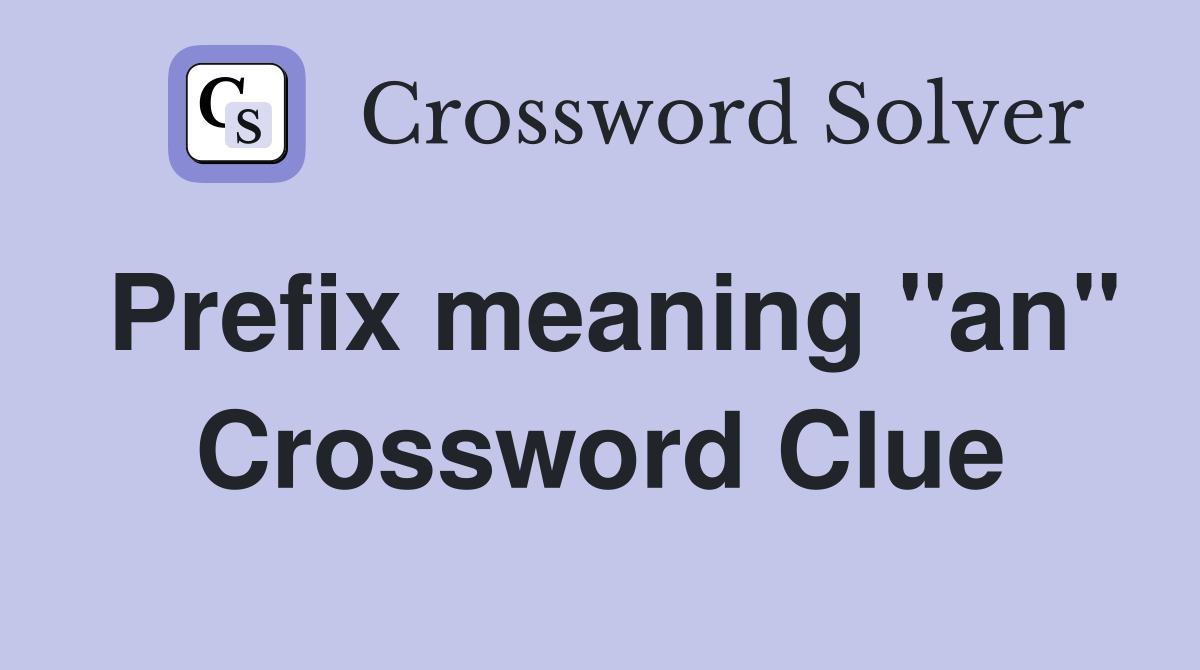 Prefix meaning "an" Crossword Clue Answers Crossword Solver