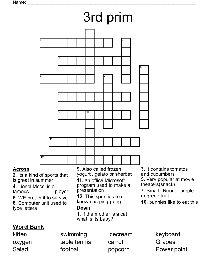 Zoey's Prim, Prin, Proto Crossword WordMint