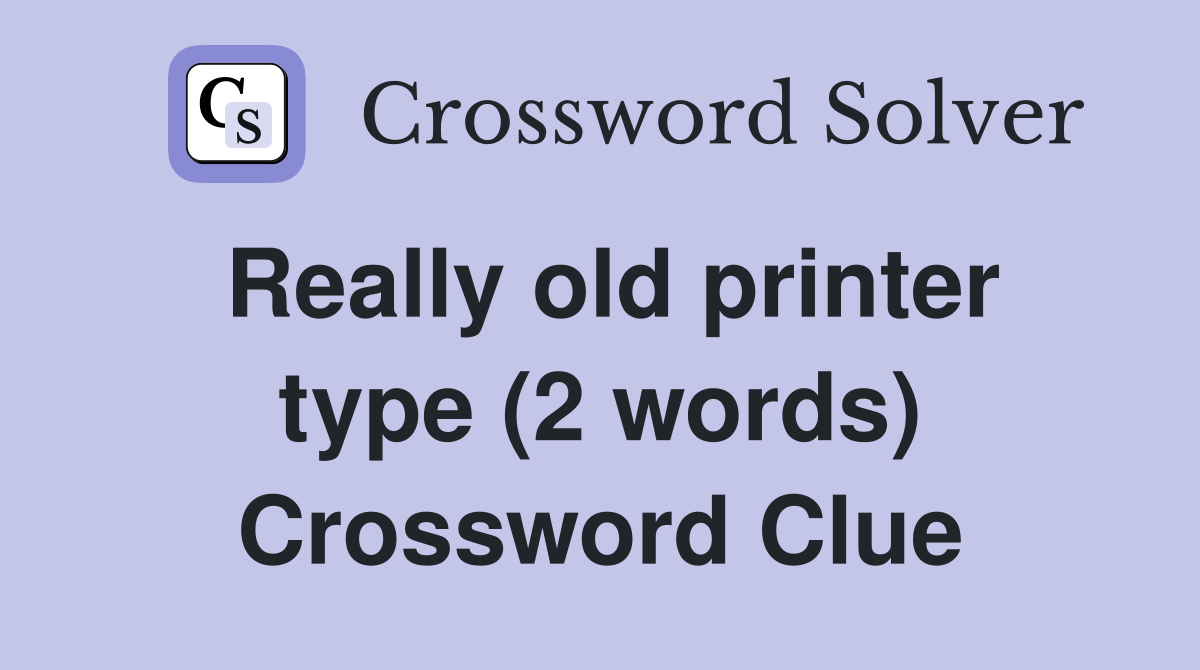 Really old printer type (2 words) Crossword Clue Answers Crossword Solver
