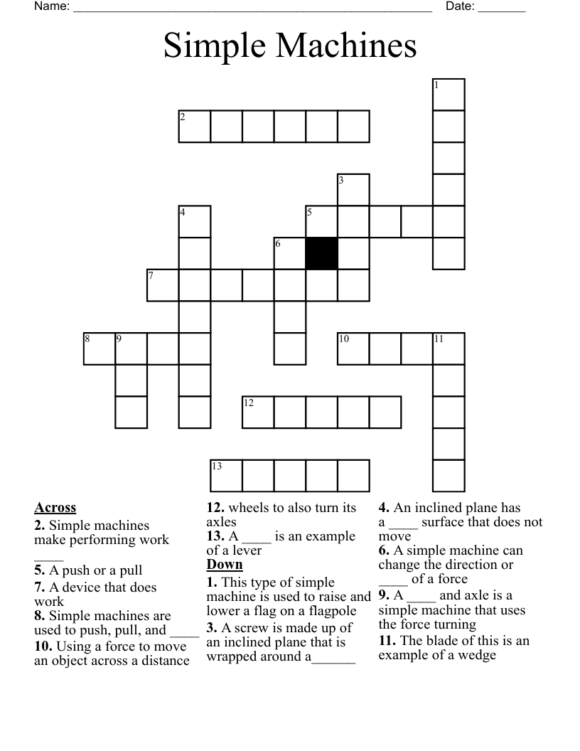 Simple Machines Crossword WordMint