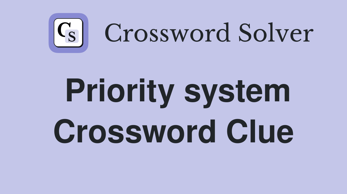 There are related clues (shown below). 'priority system' is the definition. Web we found one answer for the crossword clue priority system. (i've seen this in another clue) this is all the clue.