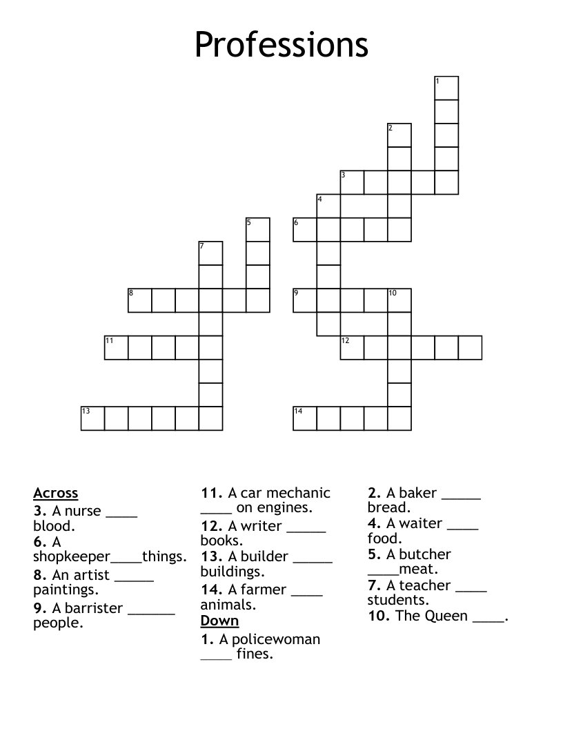 Crosswords jobs Crossword, English lessons for kids, English worksheets for kids