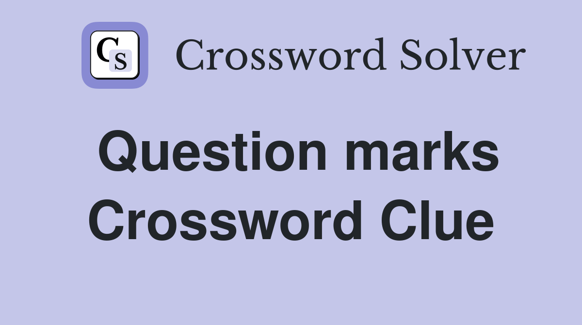 Web here is the answer for the crossword clue question marks featured in la times daily puzzle on april 3, 2024. Web on this page you will find the question marks crossword clue answers and solutions. Web all crossword answers with 3 letters for question marks found in daily crossword puzzles: The possible answer is ifs. Web the crossword solver.
