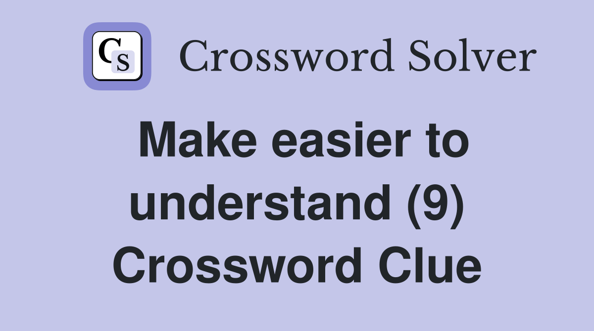 Make easier to understand (9) Crossword Clue Answers Crossword Solver