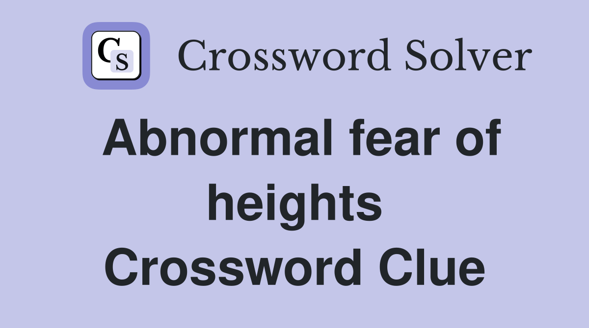 Abnormal fear of heights Crossword Clue Answers Crossword Solver