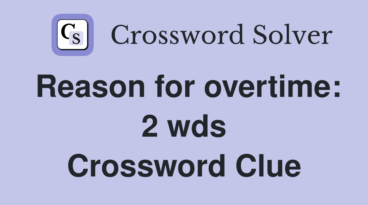 Reason for overtime 2 wds. Crossword Clue Answers Crossword Solver