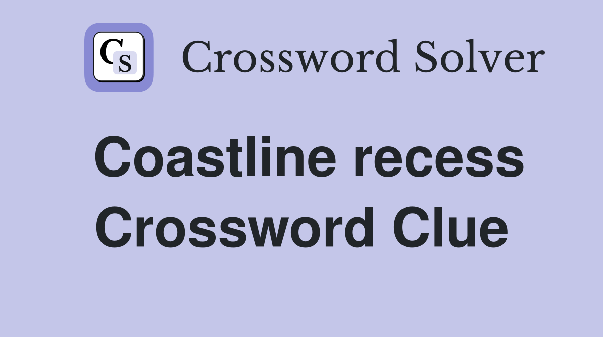 The crossword solver finds answers. Web the crossword solver found 30 answers to recess in coastline, 5 letters crossword clue. Web we have got the solution for the coastline recess crossword clue right here. Web the crossword solver found 30 answers to coastline recess (5), 5 letters crossword clue.
