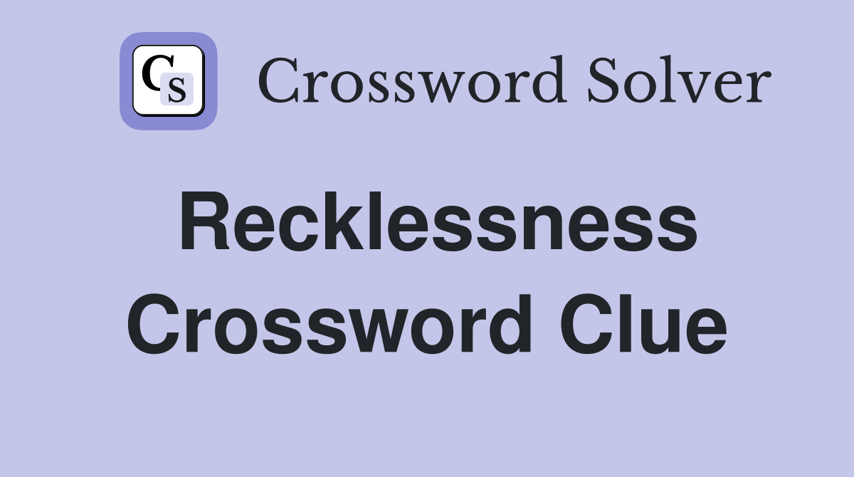 Web here is the answer for the crossword clue reckless last seen in mirror tea time puzzle. We have found 40 possible answers for this clue in our database. The crossword solver finds answers to classic. Web we found 9 answers for “recklessness”. Web today's crossword puzzle clue is a quick one:
