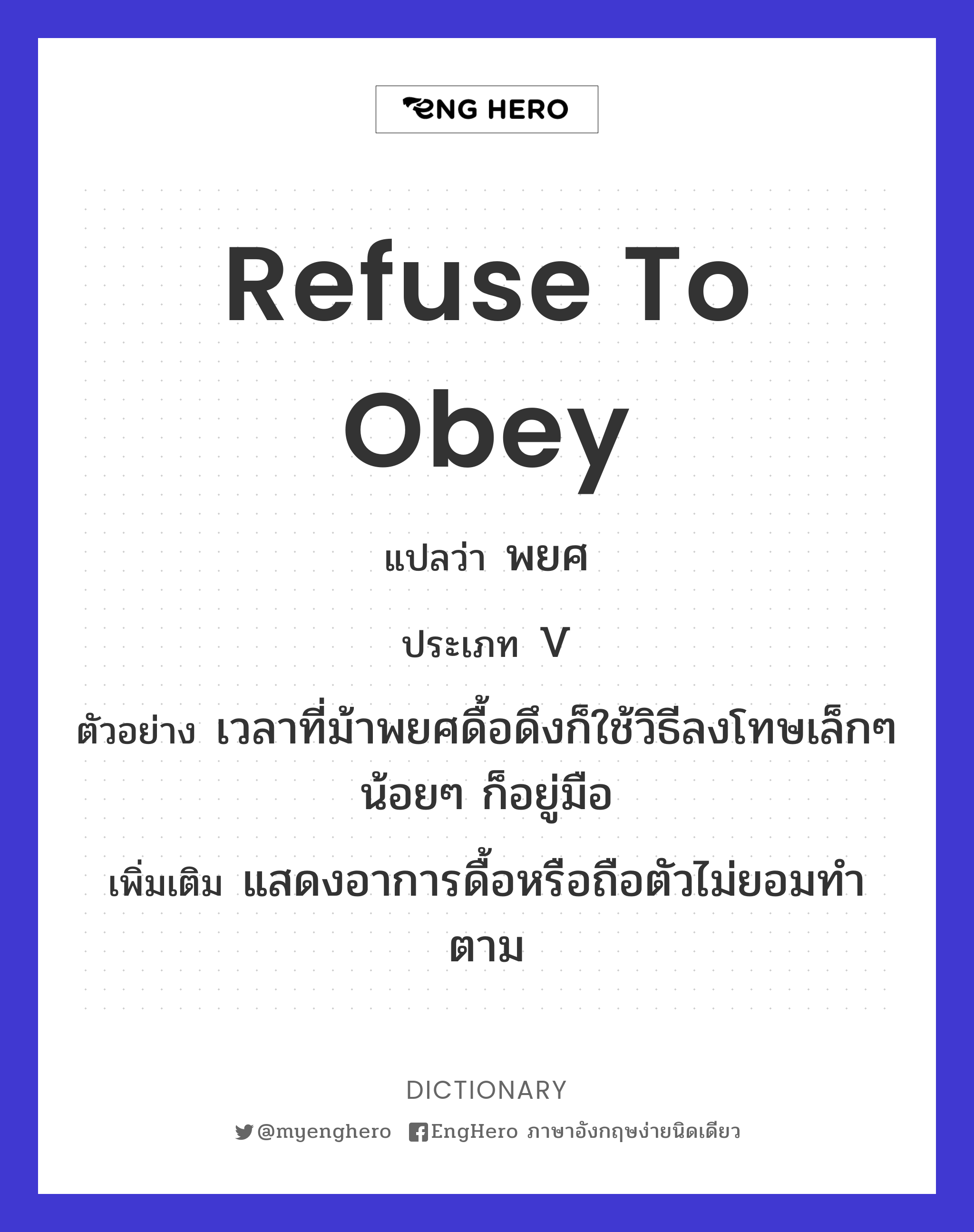 Refuse To Obey แปลว่า พยศ Eng Hero เรียนภาษาอังกฤษ ออนไลน์ ฟรี