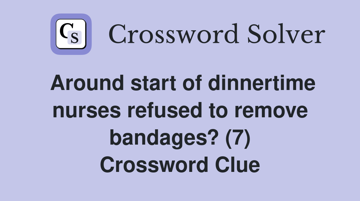 Around start of dinnertime nurses refused to remove bandages? (7) Crossword Clue Answers