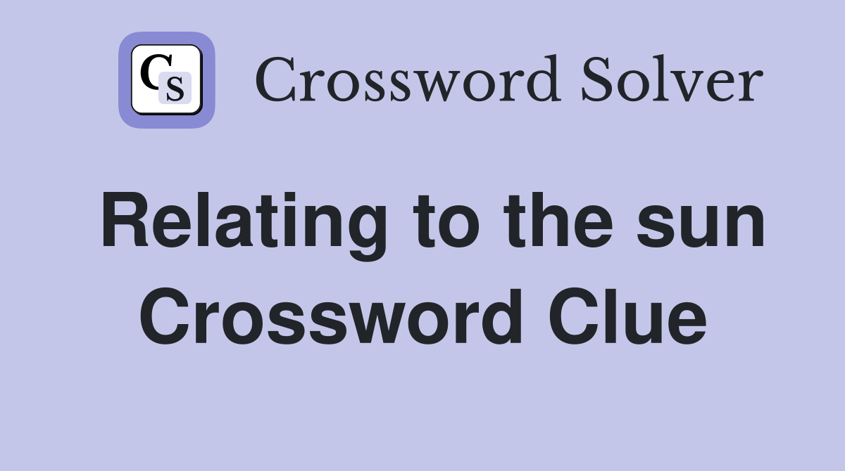 Web still struggling to solve the crossword clue 'relating to the sun'? We have found 40 possible. Relating to the sun is a crossword puzzle clue that we have spotted 2 times. The crossword solver finds answers. (other definitions for solar that i've seen.