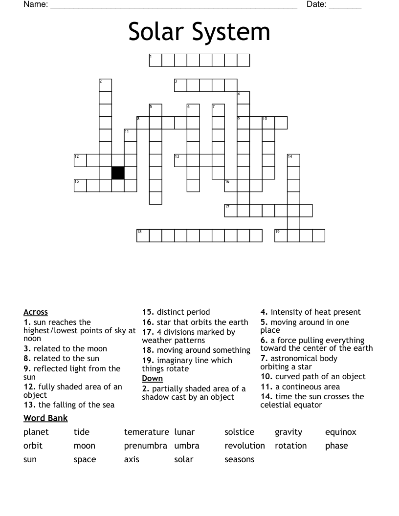 Solar System Crossword WordMint
