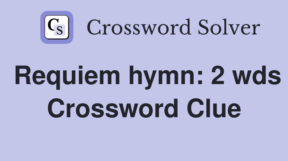Web here is the answer for the crossword clue requiem hymn: Last seen in commuter puzzle. The crossword solver finds answers. 2wds., 3 letters crossword clue.