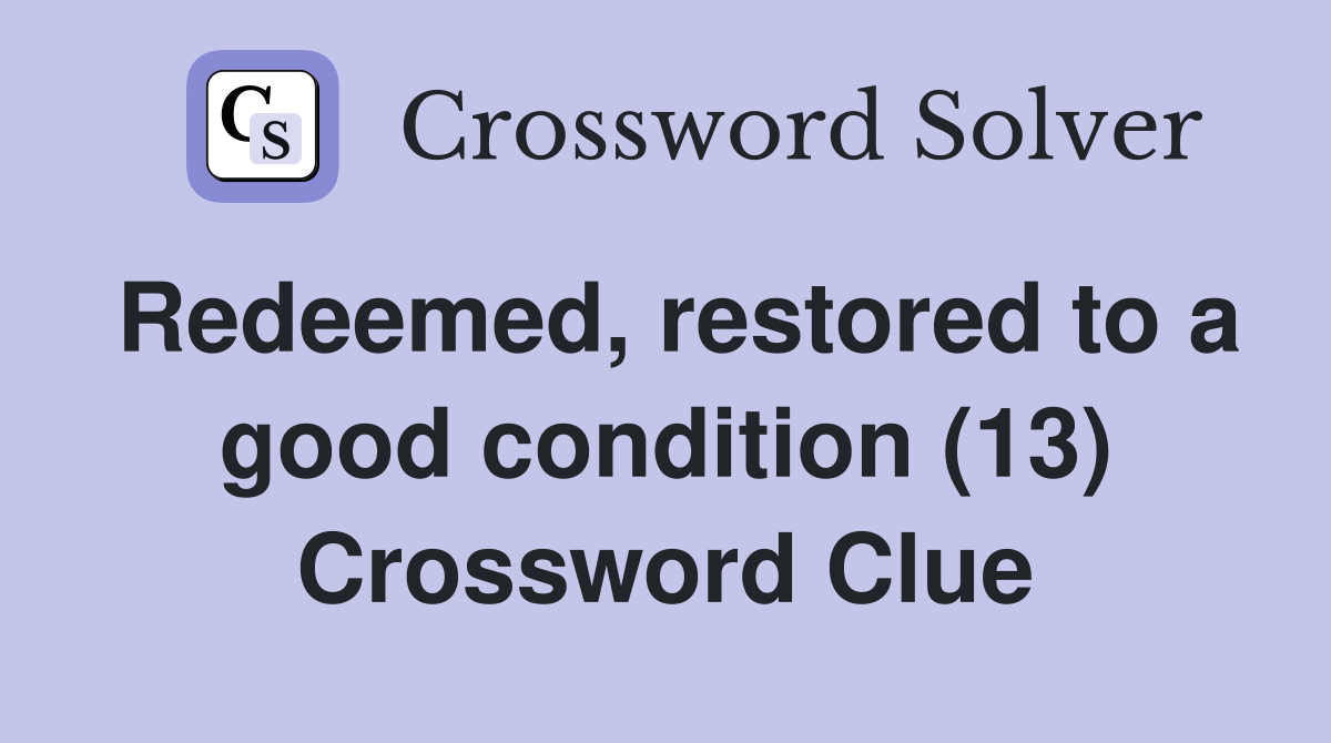 Redeemed, restored to a good condition (13) Crossword Clue Answers Crossword Solver