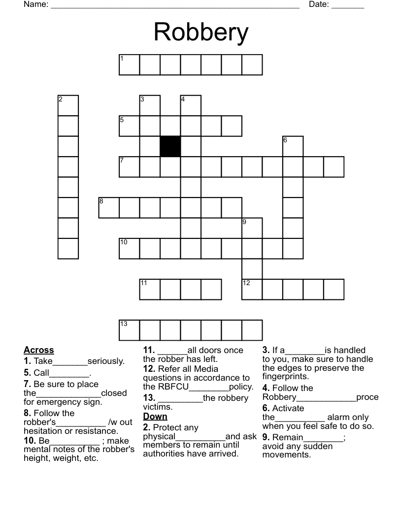 Robbery Procedures Crossword WordMint