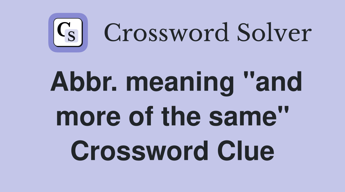 Abbr. meaning "and more of the same" Crossword Clue Answers Crossword Solver