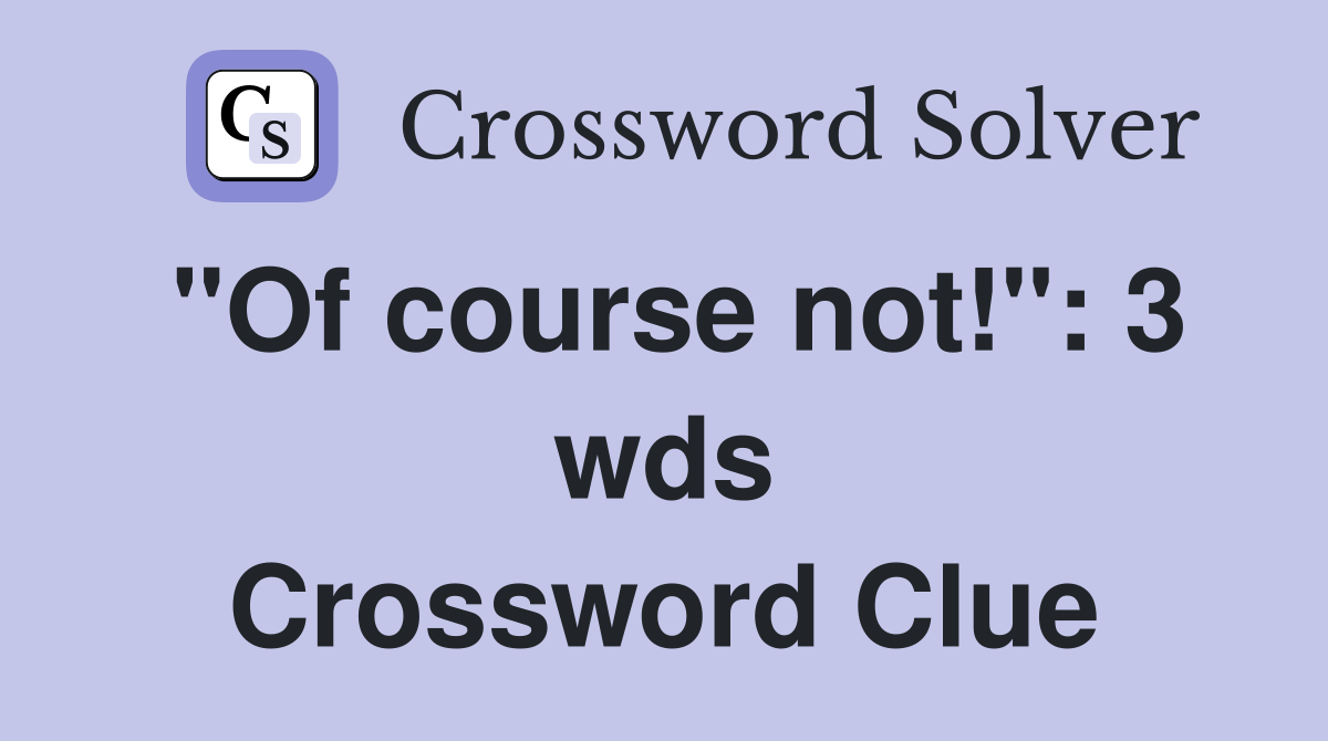 "Of course not!" 3 wds. Crossword Clue Answers Crossword Solver