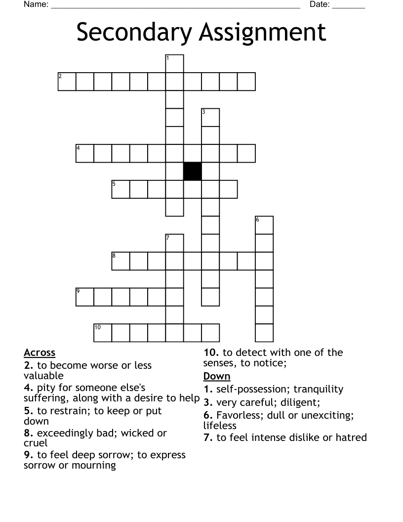 Secondary Assignment Crossword Puzzle WordMint