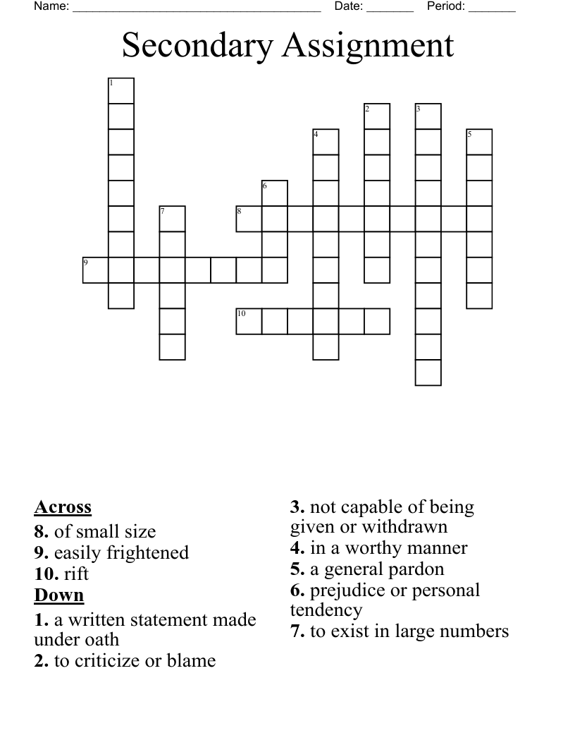 Secondary Assignment Crossword WordMint