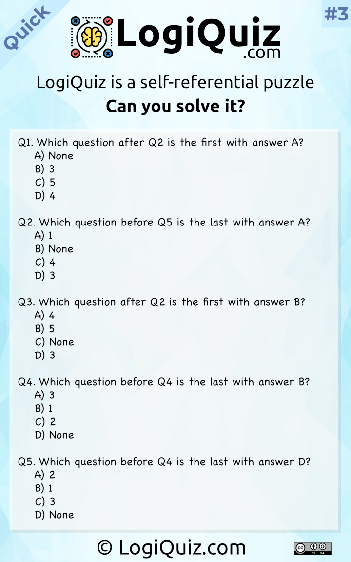 Quick LogiQuiz 3 selfreferential puzzle r/puzzles