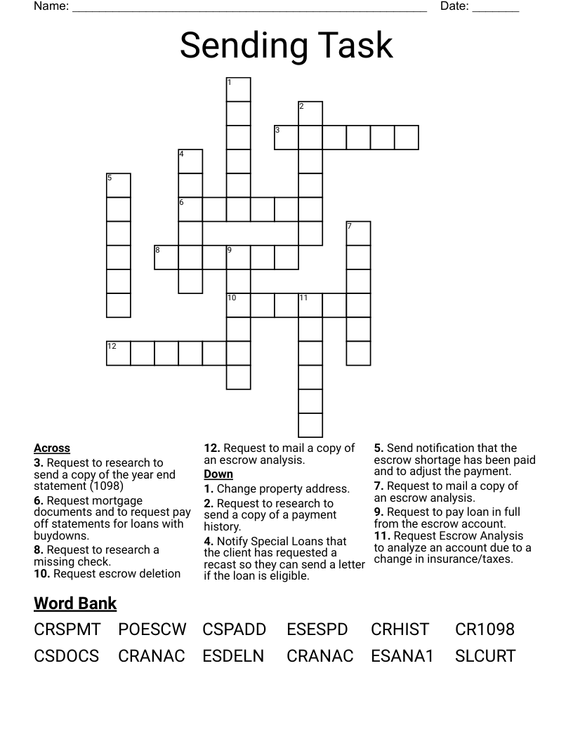 Sending Task Crossword WordMint