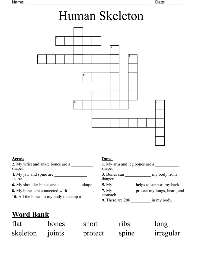 Human Skeleton Crossword WordMint
