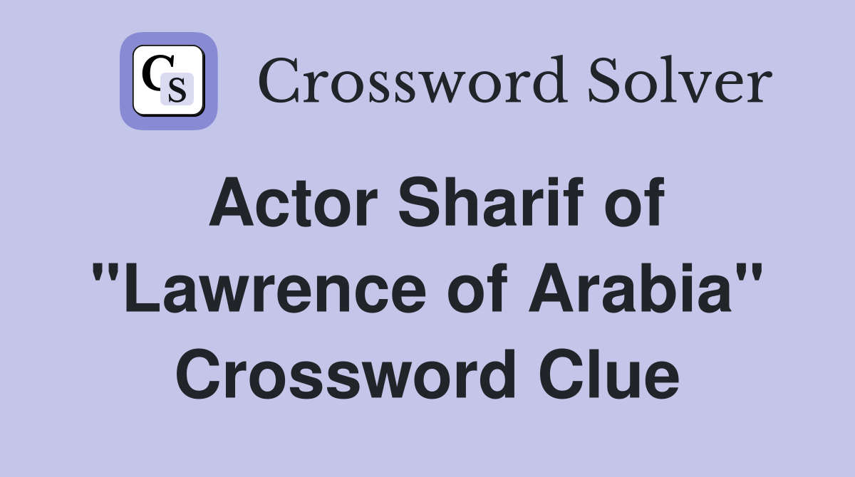 Actor Sharif of "Lawrence of Arabia" Crossword Clue Answers Crossword Solver
