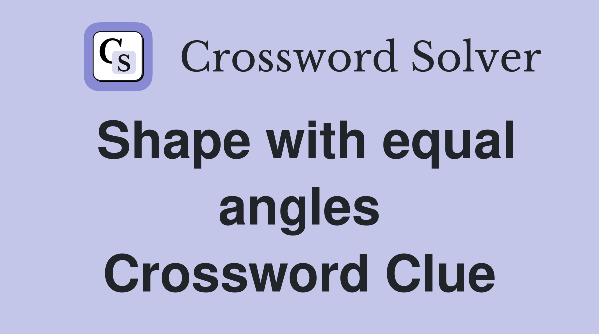 Web the crossword solver found 30 answers to shape with equal angles, 6 letters crossword clue.