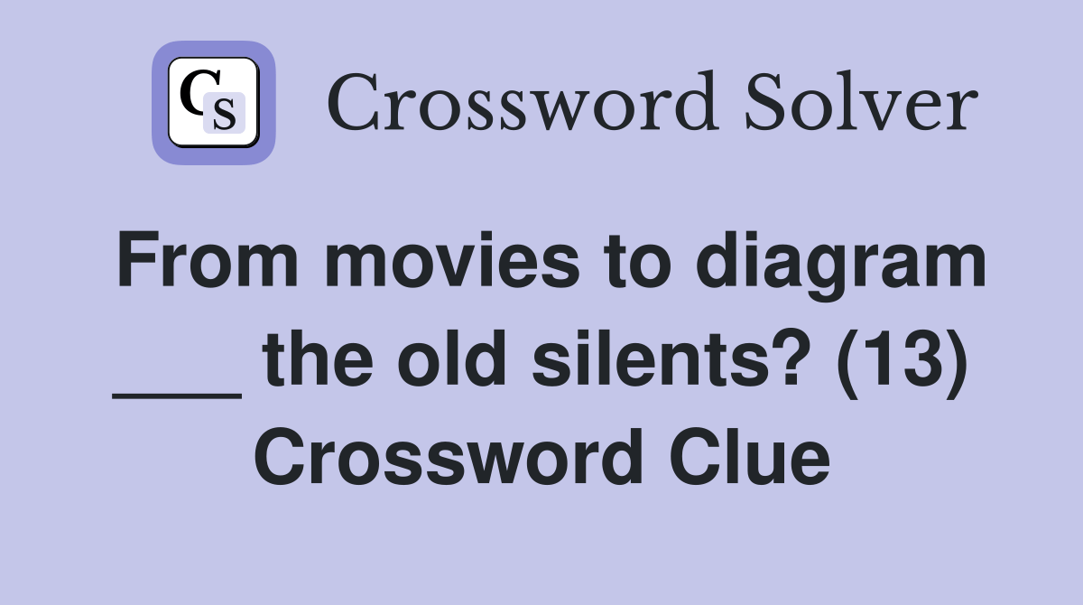 From movies to diagram ___ the old silents? (13) Crossword Clue Answers Crossword Solver