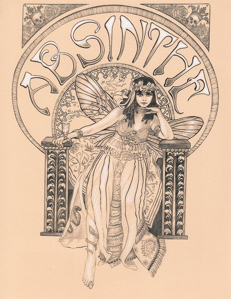My Art Nouveau drawing based on silent film star Theda Bara, critiques r/drawing