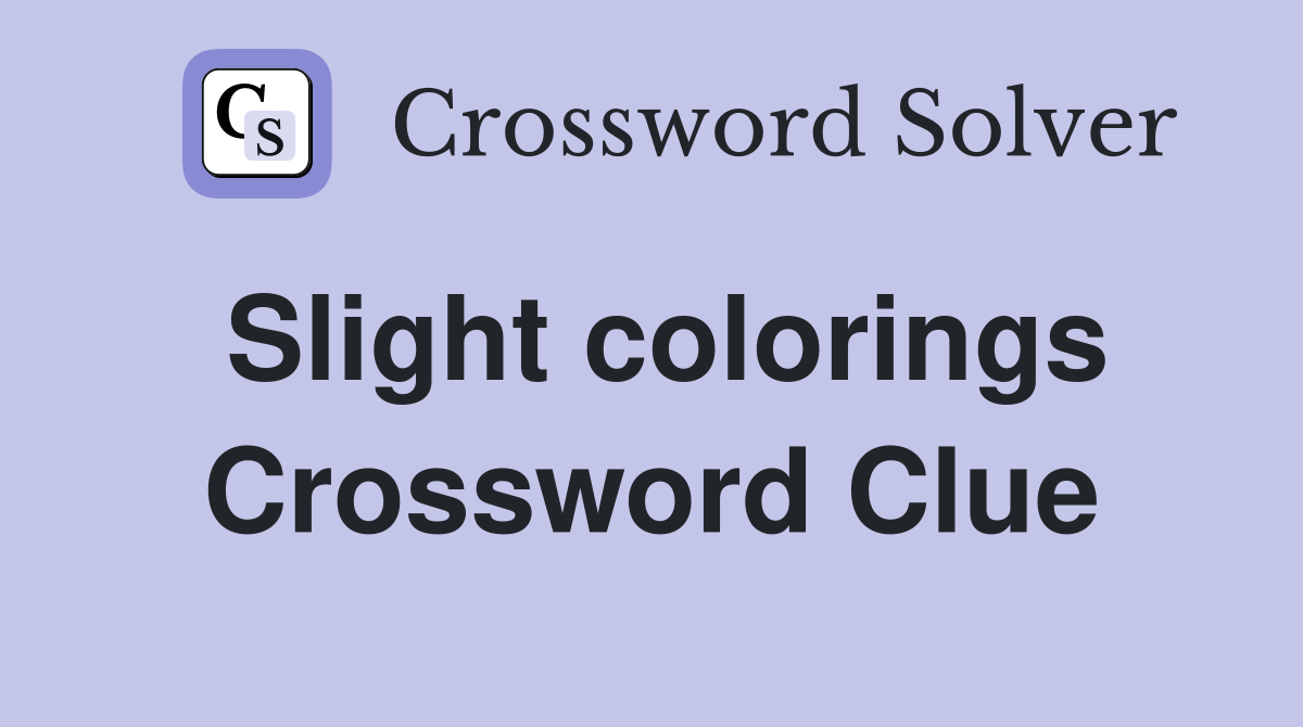 This clue was last seen on april. Web the crossword solver found 30 answers to slight colorings, 5 letters crossword clue. The crossword solver finds answers to. Web slight colorings crossword clue answers are listed below.
