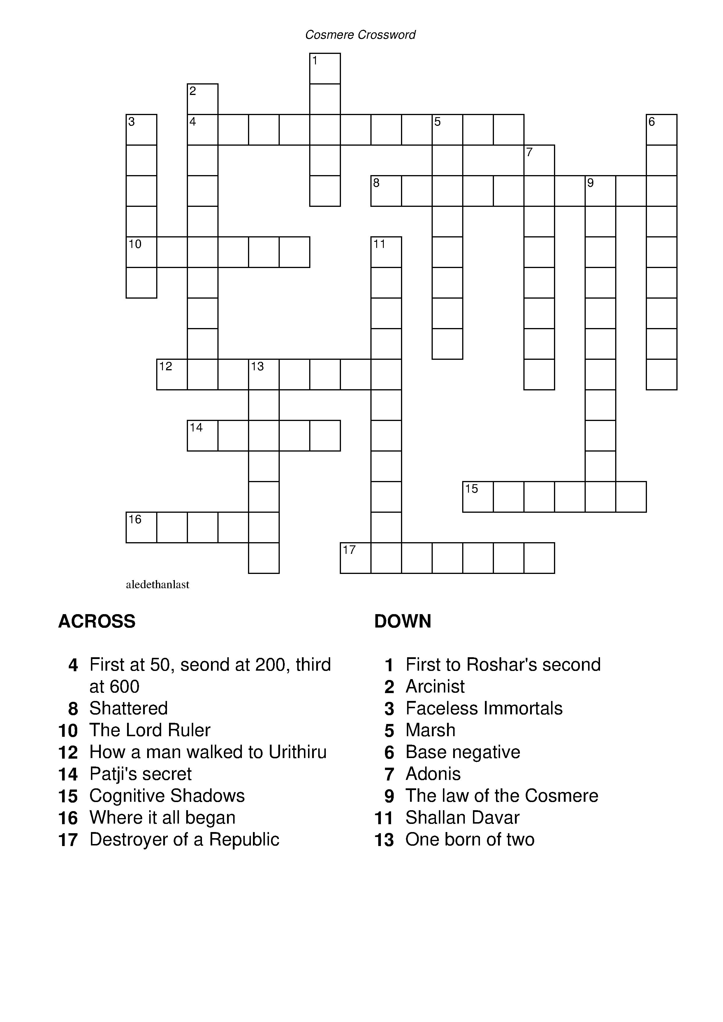 So I created a crossword for the Cosmere books. [All Spoilers] r/Cosmere