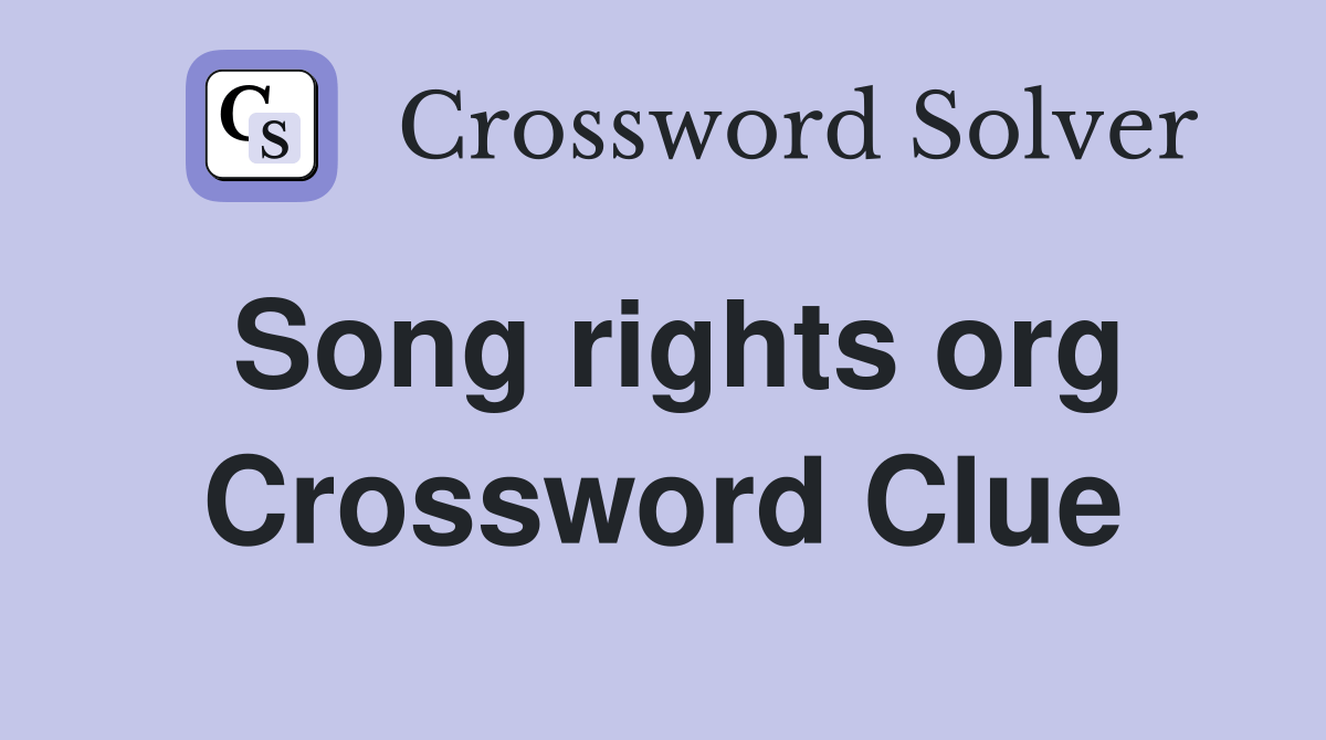 The crossword solver finds answers to. Web 13 rows crossword clue. Home > puzzles > daily commuter february 14, 2024 > song rights org. Web we have got the solution for the song rights org. Web here is the answer for the crossword clue song rights org.
