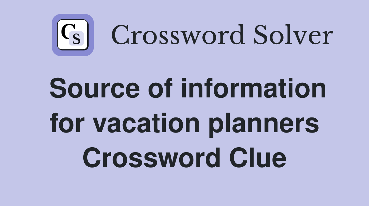 Source of information for vacation planners Crossword Clue Answers Crossword Solver