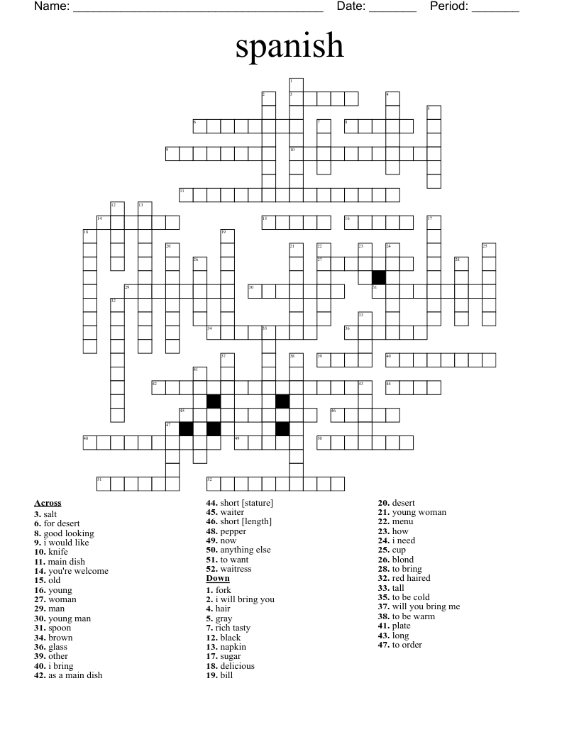 Spanish Crossword Puzzle WordMint