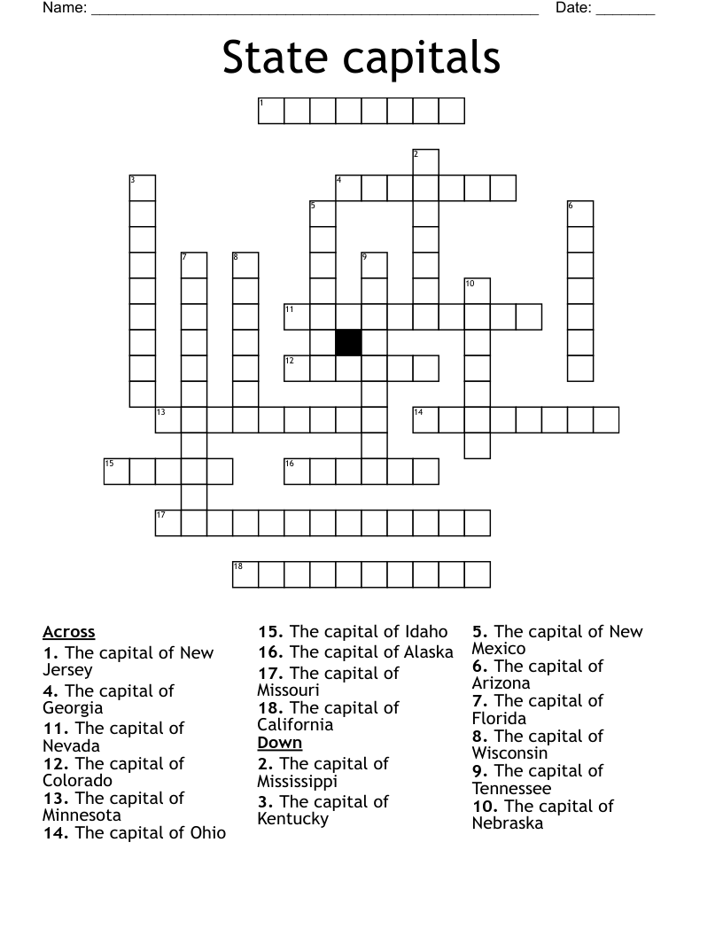 State Capital Crossword Puzzle Printable