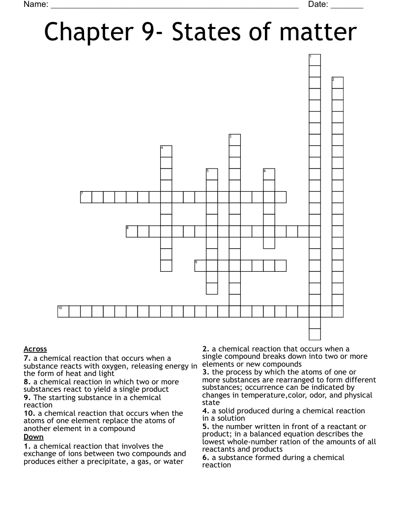 Chapter 9 States of matter Crossword WordMint