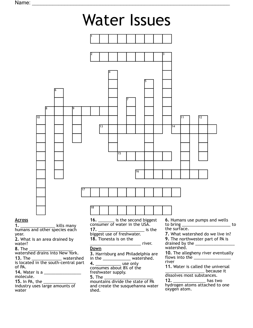 Wayne Drop Crossword Puzzle Conservation activities, Crossword puzzle, Water saving tips